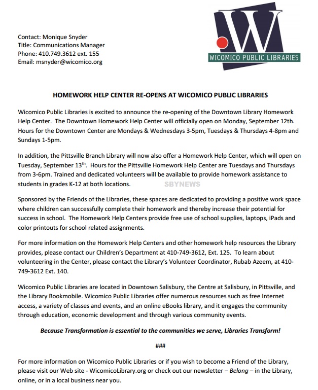 - Wicomico Public Libraries Homework Help Center - Re-opens